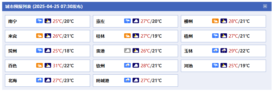 廣西氣象臺(tái)25日05時(shí)發(fā)布預(yù)報(bào):
