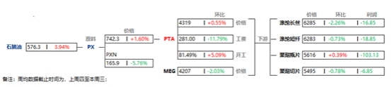 市場由聚焦地緣爭端及美國在貿(mào)易戰(zhàn)中對(duì)中國表現(xiàn)出更為緩和的態(tài)度,聚酯板塊隨原油(607, -8.60, -1.40%)反彈修復(fù)偏低估值,然歸咎于需求端的限制,漲勢明顯受限,因挺加工費(fèi),聚酯瓶片大廠計(jì)劃減產(chǎn)20%及滌綸長絲大廠計(jì)劃減產(chǎn)10%-15%。尾盤擔(dān)憂原油供應(yīng)端風(fēng)險(xiǎn),原油大跌拖累,但聚酯產(chǎn)銷放量且現(xiàn)實(shí)需求穩(wěn)健,PTA(5834, -4.00, -0.07%)市場表現(xiàn)抗跌。