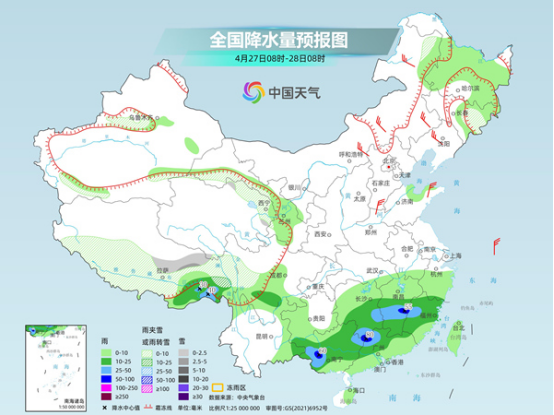 未來(lái)三天(4月27日至29日),華南降雨頻繁,其中今天和后天雨勢(shì)較強(qiáng),部分地區(qū)有暴雨,并伴強(qiáng)對(duì)流天氣,需注意防范。氣溫方面,今天,北方多地將有降溫,之后氣溫迅速反彈。4月底至5月初,南北方多地氣溫將創(chuàng)今年以來(lái)新高。