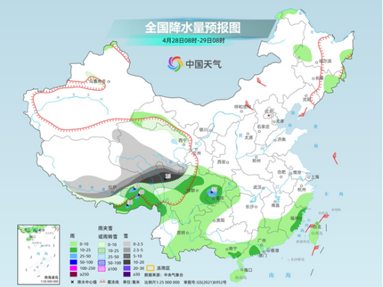 氣象部門提醒,目前華南已進(jìn)入降水集中期,未來(lái)三天當(dāng)?shù)亟涤耆员容^頻繁,雖然有利于緩和氣象干旱,但需防范局地強(qiáng)降雨和強(qiáng)對(duì)流天氣不利影響。同時(shí),西藏東部和南部、四川西部等地雨雪連連,需注意防范連續(xù)降水對(duì)交通出行、農(nóng)牧業(yè)等方面的不利影響。