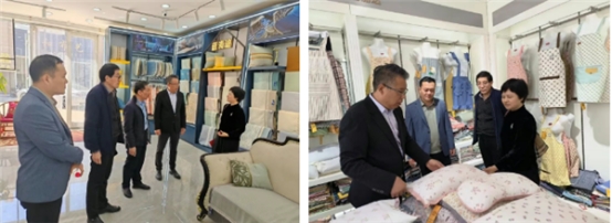 22日上午,中家紡一行來(lái)到位于深澤縣白莊鄉(xiāng)的紅柏家紡市場(chǎng),市場(chǎng)負(fù)責(zé)人、石家莊米萊家具用品有限公司董事長(zhǎng)何建清介紹了當(dāng)?shù)禺a(chǎn)業(yè)發(fā)展概況、市場(chǎng)運(yùn)營(yíng)及“中國(guó)小堡布藝”展銷會(huì)情況,并陪同參觀了商戶展廳。