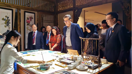 活動(dòng)尾聲,使節(jié)團(tuán)參與了蜀繪DIY體驗(yàn)及有獎(jiǎng)互動(dòng)環(huán)節(jié),非遺大師在絲綢上繪制了象征友好合作的圖案;絲綢不僅是商品,更是跨越國界的情感載體。期待非洲的手工蠟染技藝能與蜀繪展開對(duì)話,共同豐富“一帶一路”的文化圖景。