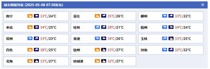 廣西氣象臺(tái)8日05時(shí)發(fā)布預(yù)報(bào):