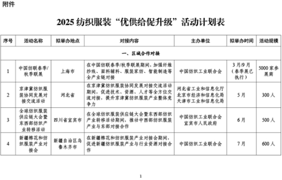 附件:2025紡織服裝“優(yōu)供給促升級”活動計劃表