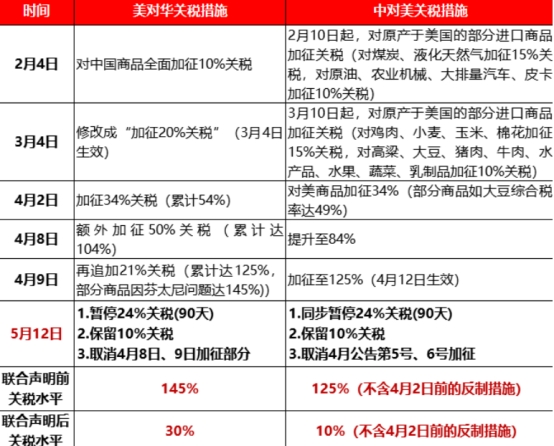 中美日內(nèi)瓦會(huì)談前后中美關(guān)稅對(duì)比表