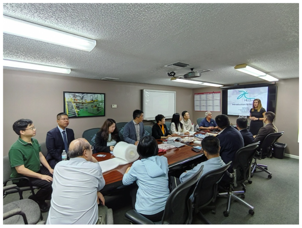 Uniquetex是中國企業(yè)在美國投資的非織造布公司,2018年投產(chǎn),目前運營5條紡熔非織造布生產(chǎn)線,可生產(chǎn)家居用品、工業(yè)用品、衛(wèi)生用品、醫(yī)療用品及特種技術(shù)領(lǐng)域的高品質(zhì)非織造材料。代表團一行與Uniquetex公司董事長鄧偉雄、中國臺灣區(qū)不織布同業(yè)公會理事長簡嘉菁就關(guān)稅對行業(yè)的影響和非織造布企業(yè)在美投資等話題進行了深入的交流。