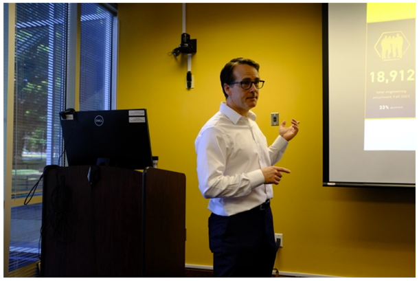 佐治亞理工學(xué)院是美國知名的工學(xué)院,材料科學(xué)與工程學(xué)院的前身是1897年成立的紡織學(xué)院。材料科學(xué)與工程學(xué)院副院長Christopher Muhlstein教授介紹了學(xué)院發(fā)展和所擁有的多個跨學(xué)科科研體系以及多個創(chuàng)新體系的運作模式,特別是企業(yè)的參與和獲益模式。學(xué)院PARK教授、Jacob教授和姚東剛教授分別就智能可穿戴、聚合物及纖維加工、聚合物模擬等課題與代表團進行了分享交流。