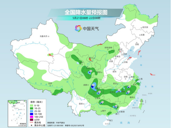 本周,南方仍處多雨模式,多地有持續(xù)性降雨且伴有強對流天氣。21日前后降雨范圍還將擴大,中東部將有一次大范圍的降雨過程,西北地區(qū)東部、華北、黃淮多地也將出現(xiàn)降雨,山西、陜西、河南等旱區(qū)也有望迎來“解渴雨”。