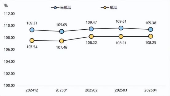 4月,需求方面,終端消費(fèi)市場需求疲軟,毛巾、家紡等下游領(lǐng)域訂單持續(xù)萎縮。供給方面,終端織造企業(yè)開工率繼續(xù)降低,坯布庫存升至24.14天,同時(shí),美國關(guān)稅政策不確定性導(dǎo)致國際訂單轉(zhuǎn)移至東南亞。受多重因素影響,本期高陽紡織產(chǎn)品價(jià)格指數(shù)收報(bào)于108.70點(diǎn),環(huán)比下跌0.06%,同比下跌1.03%。