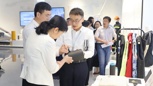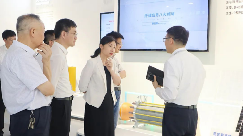 調(diào)研中,董琤一行實(shí)地參觀了創(chuàng)新中心展廳,詳細(xì)了解中心在纖維材料創(chuàng)新及綠色低碳方面的技術(shù)研發(fā)、專利布局及成果轉(zhuǎn)化情況。