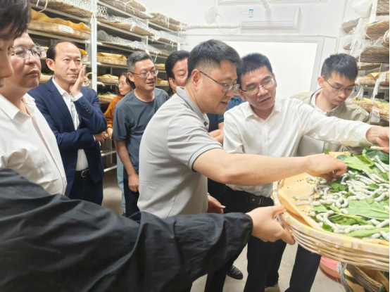 會上,雙方重點圍繞項目申報、成果轉(zhuǎn)化、平臺建設(shè)等問題,深入探討了推動潛山市蠶桑產(chǎn)業(yè)高質(zhì)量發(fā)展的思路和舉措,詳細(xì)謀劃了下一步合作具體方案。會后,調(diào)研組一行實地考察了蠶桑研究所家蠶種保育中心、智能化養(yǎng)蠶設(shè)備、人工飼料育實驗室及食藥用菌種質(zhì)資源庫等科研平臺,詳細(xì)了解相關(guān)設(shè)備運行情況。
