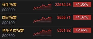 5月29日消息,港股三大指數(shù)全天強(qiáng)勢(shì),截至收盤,恒生指數(shù)(23573.379, 315.07, 1.35%)漲1.35%,報(bào)23573.38點(diǎn),恒生科技指數(shù)(5301.92, 127.28, 2.46%)漲2.46%,國(guó)企指數(shù)漲1.37%。盤面上,科網(wǎng)股普漲,美團(tuán)漲超6%,快手漲近5%,京東集團(tuán)漲超4%,聯(lián)想集團(tuán)(9.45, 0.29, 3.17%)漲超3%;穩(wěn)定幣概念股強(qiáng)勢(shì)上揚(yáng),連連數(shù)字漲近45%,眾安在線(21.05, 5.05, 31.56%)漲超31%;生物技術(shù)股大漲,藥明巨諾漲近20%;芯片股走高,華虹半導(dǎo)體(32.55, 1.85, 6.03%)漲超6%。