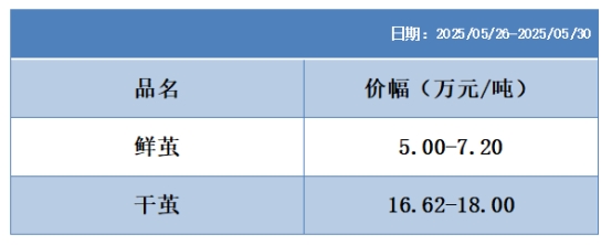 本周高品位生絲協(xié)作單位成交價格區(qū)間