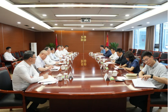 6月4日,蘇豪控股集團黨委書記、董事長周勇會見來訪的南京市副市長許峰一行,雙方就深化地企務實合作、拓展合作廣度深度進行交流。南京市政府副秘書長何軍,蘇豪控股集團副總裁、黨委委員丁海參加座談。