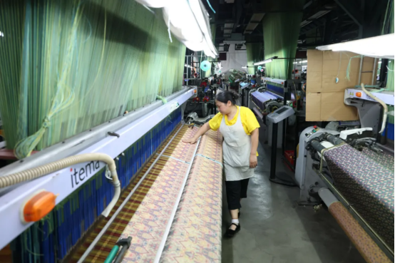四川依格爾紡織品有限公司生產(chǎn)車間內(nèi),紡織女工正在生產(chǎn)