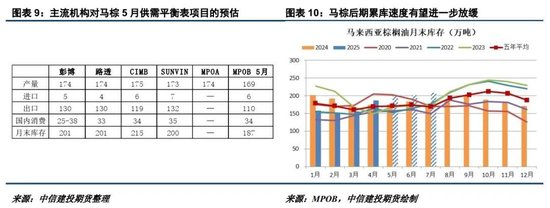 然而,短期棕櫚油漲勢受到馬棕5月進(jìn)一步累庫的制約。盡管馬棕5月階段性產(chǎn)量增幅持續(xù)縮窄,在上月高基數(shù)的產(chǎn)量下,目前主流機(jī)構(gòu)預(yù)估的馬棕5月產(chǎn)量仍高達(dá)174萬噸左右,即便出口環(huán)比大幅增長至130萬噸附近,馬棕5月末庫存仍有望攀升至200萬噸以上,這對MPOB月報前的棕櫚油走勢帶來打壓。不過,在國際豆棕價差修復(fù),且印度植物油補(bǔ)庫有望提振產(chǎn)地出口的背景下,我們預(yù)計馬棕后期累庫速度將進(jìn)一步放緩,這將限制棕櫚油價格在當(dāng)前位置的進(jìn)一步下跌幅度。