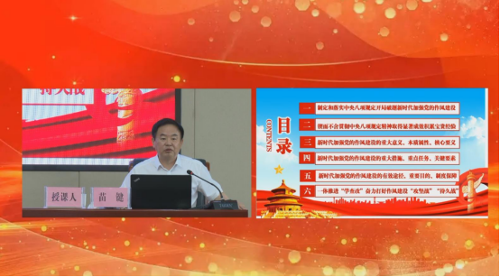 報告會邀請安徽省文史研究館館員、安徽省委黨史研究院(省地方志研究院)原副院長苗鍵圍繞習(xí)近平總書記關(guān)于加強(qiáng)黨的作風(fēng)建設(shè)的重要論述,從鍥而不舍貫徹中央八項(xiàng)規(guī)定精神取得顯著成效、積累寶貴經(jīng)驗(yàn),新時代加強(qiáng)黨的作風(fēng)建設(shè)的重大意義、本質(zhì)屬性、核心要義、重點(diǎn)任務(wù)、有效途徑、制度保障,一體推進(jìn)學(xué)查改奮力打好作風(fēng)建設(shè)攻堅(jiān)戰(zhàn)持久戰(zhàn)等6個方面,進(jìn)行系統(tǒng)闡釋和深入解讀。