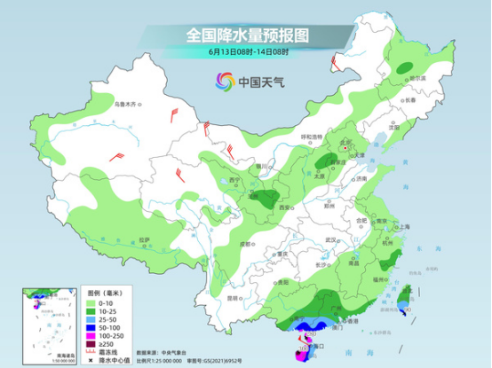 后天,海南島大部、廣東西南部、廣西東南部、臺灣島南部等地的部分地區(qū)有暴雨到大暴雨,其中海南島西部、雷州半島的局部地區(qū)有特大暴雨;西北地區(qū)東部、華北中部、東北地區(qū)北部等地的部分地區(qū)有中雨。