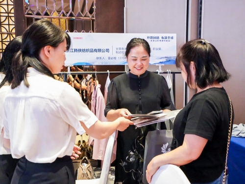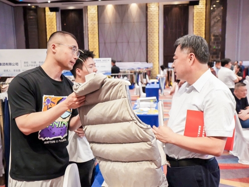 活動(dòng)現(xiàn)場(chǎng),印尚紡織、騰俠紡織、鳳凰莊、花王紡織、名尊紡織等30余家柯橋優(yōu)質(zhì)面料企業(yè)與山東魏橋、希努爾、鴻天集團(tuán)、方鐸服飾、元首針織、耶莉婭以及聊城棉服產(chǎn)業(yè)集群、汶上休閑裝產(chǎn)業(yè)集群等地的百余家服裝企業(yè)進(jìn)行面對(duì)面對(duì)接,打造了一場(chǎng)商貿(mào)成效顯著的產(chǎn)業(yè)對(duì)接交流會(huì)。