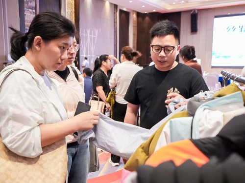 倚信紡織則帶來(lái)了“柔性凸版印花工藝”運(yùn)動(dòng)服和“極御”戶外運(yùn)動(dòng)羽絨系列。其運(yùn)動(dòng)服運(yùn)用“柔性凸版印花工藝”與防偽級(jí)精細(xì)印花技術(shù),0.01mm超精細(xì)激光雕刻制版突破印染極限,精準(zhǔn)供墨系統(tǒng)降低染料用量,同時(shí)提升色牢度與畫(huà)面表現(xiàn)力?!皹O御”戶外運(yùn)動(dòng)羽絨系列,則采用高密度三防科技面料,踐行“功能即美學(xué)”理念,保持超輕克重與高透氣性,實(shí)現(xiàn)全天候防護(hù)與場(chǎng)景無(wú)界切換。先進(jìn)的工藝與時(shí)尚的產(chǎn)品,成功吸引了現(xiàn)場(chǎng)眾多服裝品牌的目光,大家紛紛主動(dòng)前來(lái)對(duì)接洽談合作。