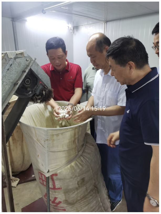 2025年6月14日,中國蠶學會常務(wù)理事、安徽省科協(xié)委員、安徽省蠶學會黨委書記、理事長范濤研究員帶領(lǐng)相關(guān)專家深入安慶市潛山、岳西和六安市霍山,組織開展學會專家市縣企業(yè)行和“黨建強會”活動,專題調(diào)研人工飼料工廠化養(yǎng)蠶進展情況并指導春繭收購工作,中國蠶學會常務(wù)理事、副秘書長、安徽省蠶學會黨委副書記、常務(wù)副理事長兼秘書長張穎高工陪同調(diào)研。