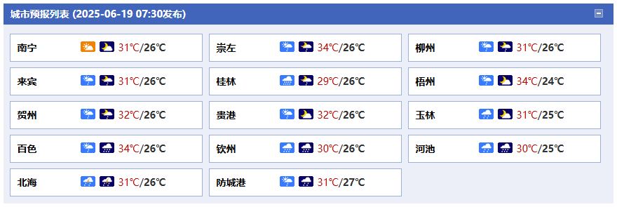 廣西氣象臺(tái)19日05時(shí)發(fā)布預(yù)報(bào):