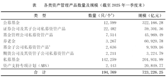 中國(guó)基金業(yè)協(xié)會(huì)最新發(fā)布的數(shù)據(jù)顯示,截至2025年一季度末,基金管理公司及其子公司、證券公司及其子公司、期貨公司及其資管子公司、私募基金管理機(jī)構(gòu)資產(chǎn)管理產(chǎn)品總規(guī)模達(dá)72.32萬(wàn)億元。