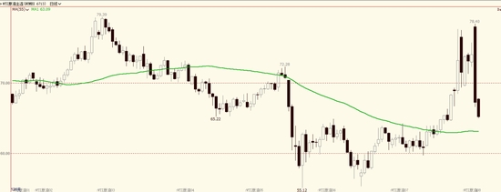 油價(jià)收出年內(nèi)最大實(shí)體陰線,從日內(nèi)高點(diǎn)近12美元的超級(jí)大陰線。