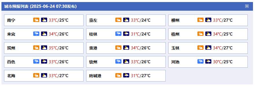 廣西氣象臺(tái)24日05時(shí)發(fā)布預(yù)報(bào):