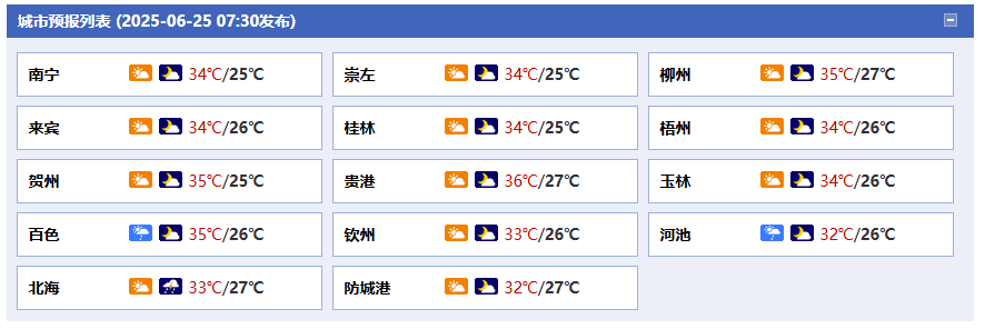廣西氣象臺(tái)25日05時(shí)發(fā)布預(yù)報(bào):