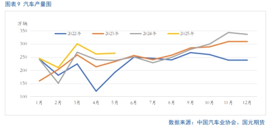 2025年下半年全球經(jīng)濟形勢依然錯綜復雜。考慮到全球天然橡膠處于增產(chǎn)季向高產(chǎn)季過渡,因此供給端存在持續(xù)上漲的預期。從需求端來看,下游輪胎行業(yè)對上游天膠市場的拉動有限,而終端汽車行情可能面臨內(nèi)需好于外需的局面。綜合宏觀以及基本面的實際情況,我們認為三季度天膠價格仍將面臨供應寬松局面,價格可能存在下滑的預期,市場的轉(zhuǎn)折預期將要到“金九銀十”旺季的表現(xiàn),盤面有可能會走出止跌企穩(wěn)局面,但受制于供需基本面乏力,修復空間有限。