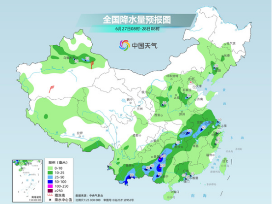 今明天(6月27日至28日),我國仍有大范圍降雨,呈現(xiàn)面弱點(diǎn)強(qiáng)的特點(diǎn),黃淮等局地將現(xiàn)暴雨,且降雨的同時(shí)還可能伴有強(qiáng)對(duì)流天氣,公眾需關(guān)注預(yù)警預(yù)報(bào),如遇雷暴大風(fēng)或冰雹及時(shí)進(jìn)建筑物內(nèi)躲避。同時(shí),江南多地將上演高溫持久戰(zhàn),杭州等地高溫日數(shù)或達(dá)7天,需持續(xù)做好防暑措施。