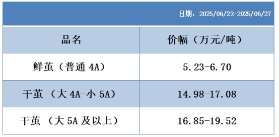 本周高品位生絲協(xié)作單位成交價(jià)格區(qū)間