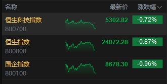 今日港股三大指數(shù)集體收跌,截至收盤,恒生指數(shù)(24072.279, -211.87, -0.87%)跌0.87%,報(bào)24072.28點(diǎn),恒生科技指數(shù)(5302.82, -38.61, -0.72%)跌0.72%,國(guó)企指數(shù)跌0.96%。盤面上,科網(wǎng)股漲跌不一,網(wǎng)易、小米集團(tuán)漲超1%,美團(tuán)跌超3%,阿里巴巴跌超2%;加密貨幣概念股大漲,新火科技控股(3.1, 0.74, 31.36%)漲超30%;醫(yī)藥外包概念漲幅居前,昭衍新藥(17.4, 1.96, 12.69%)漲超12%;新消費(fèi)概念股多股上漲,老鋪黃金漲近15%;今日三只新股上市,IFBH、云知聲首日大漲超40%。