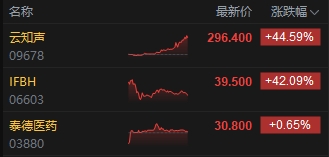 今日三只新股上市,其中,IFBH、云知聲首日大漲超40%,泰德醫(yī)藥微漲。