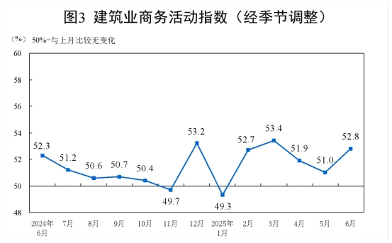 分行業(yè)看,建筑業(yè)商務(wù)活動指數(shù)為52.8%,比上月上升1.8個百分點;服務(wù)業(yè)商務(wù)活動指數(shù)為50.1%,比上月下降0.1個百分點。從行業(yè)看,郵政、電信廣播電視及衛(wèi)星傳輸服務(wù)、互聯(lián)網(wǎng)軟件及信息技術(shù)服務(wù)、貨幣金融服務(wù)、資本市場服務(wù)、保險等行業(yè)商務(wù)活動指數(shù)均位于55.0%以上較高景氣區(qū)間;零售、道路運輸、航空運輸、住宿、餐飲、房地產(chǎn)等行業(yè)商務(wù)活動指數(shù)均低于臨界點。