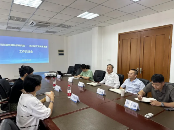 6月30日,四川省工藝美術(shù)集團有限公司常務(wù)副總經(jīng)理巫書秀一行到訪四川省絲綢科學(xué)研究院、四川省絲綢協(xié)會,進行工作交流。中國絲綢協(xié)會副會長、四川省絲綢協(xié)會副會長、四川省絲綢科學(xué)研究院黨委書記、董事長程明,四川省絲綢協(xié)會秘書長唐仕成、副秘書長楊旭超,四川省絲綢科學(xué)研究院非遺保護研究中心主任王佳麗等出席座談。