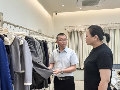 “作為一家主營(yíng)天絲、混紡的研發(fā)型面料企業(yè),我們?nèi)腭v東市場(chǎng)已近六年。當(dāng)初選擇入駐這個(gè)時(shí)尚平臺(tái),正是看中了其整體氛圍與我們產(chǎn)品定位的高度契合。來(lái)到東市場(chǎng)后,也為我們公司帶來(lái)了顯著成效,一方面,依托于市場(chǎng)強(qiáng)大的時(shí)尚輻射力與集聚效應(yīng),我們成功吸引了更廣泛、更精準(zhǔn)的目標(biāo)客群,實(shí)現(xiàn)了客流的實(shí)質(zhì)性躍升;另一方面,我們實(shí)現(xiàn)了從單一面料銷(xiāo)售向‘成衣體現(xiàn)面料’創(chuàng)新模式的轉(zhuǎn)型升級(jí)。憑借持續(xù)的創(chuàng)新和對(duì)市場(chǎng)需求的精準(zhǔn)把握,我們成功入選‘中國(guó)時(shí)尚女裝面料第一站旗艦商鋪’?!薄寄螤柤徔椏偨?jīng)理劉思倩