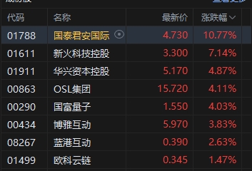 7月7日消息,港股三大指數(shù)漲跌不一。截至收盤(pán),恒生指數(shù)(23887.83, -28.23, -0.12%)跌0.12%,報(bào)23887.83點(diǎn),恒生科技指數(shù)(5229.56, 13.30, 0.26%)漲0.25%,國(guó)企指數(shù)跌0.01%。盤(pán)面上,科網(wǎng)股漲跌不一,快手、騰訊控股(502, 5.20, 1.05%)漲超1%,美團(tuán)、聯(lián)想集團(tuán)(9.53, -0.13, -1.35%)跌超1%;茶飲股大漲,茶百道漲超11%;加密貨幣概念股普漲,國(guó)泰君安國(guó)際(4.73, 0.46, 10.77%)漲超10%;博彩股漲幅居前,匯彩控股(0.86, 0.06, 7.50%)漲超7%;黃金股走弱,山東黃金(26.8, -1.70, -5.96%)跌超5%;智數(shù)科技集團(tuán)(3.85, 1.75, 83.33%)飆升超80%。