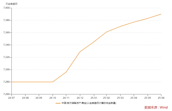 同日,國家外匯管理局發(fā)布數(shù)據(jù)顯示,6月末我國黃金儲備為7390萬盎司,環(huán)比增加7萬盎司。