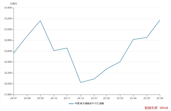 7月7日,國家外匯管理局發(fā)布的數(shù)據(jù)顯示,截至6月末,我國外匯儲備規(guī)模為33174億美元,較5月末上升322億美元,升幅為0.98%。與此同時,6月末黃金(582, 8.80, 1.54%)儲備為7390萬盎司,環(huán)比增加7萬盎司,呈現(xiàn)連續(xù)八個月增長態(tài)勢。