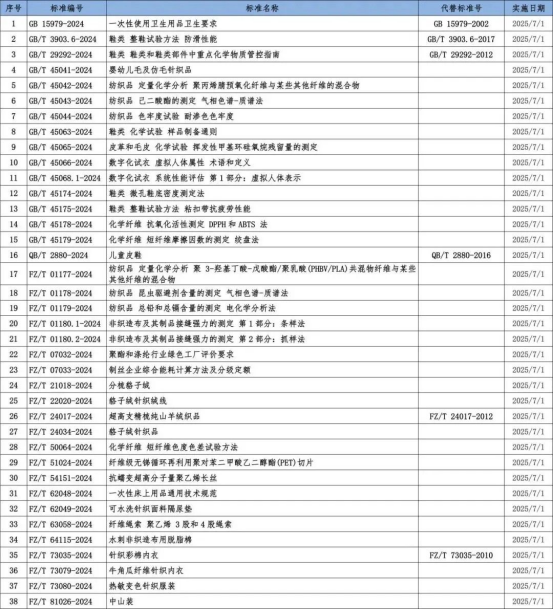 7月起,以下38項(xiàng)紡織品相關(guān)標(biāo)準(zhǔn)正式實(shí)施。