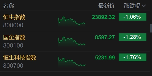 7月9日消息,港股三大指數(shù)低開低走。截至收盤,恒生指數(shù)(23892.32, -255.75, -1.06%)跌1.06%,報(bào)23892.32點(diǎn),恒生科技指數(shù)(5231.99, -93.96, -1.76%)跌1.76%,國企指數(shù)跌1.28%。盤面上,科網(wǎng)股全線下跌,阿里巴巴跌超3%,快手、美團(tuán)、網(wǎng)易跌超2%;創(chuàng)新藥概念走強(qiáng),恒瑞醫(yī)藥漲超15%;影視股漲幅居前,檸萌影視(3.63, 0.49, 15.61%)漲超15%;教育板塊活躍,粉筆(2.81, 0.33, 13.31%)漲超13%;黃金股普跌,珠峰黃金(1.82, -0.07, -3.70%)跌超3%;“周杰倫概念股”巨星傳奇盤中放量大漲165%;今日5只新股在港交所上市。