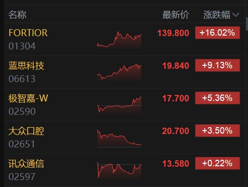今日5只新股在港交所上市,藍(lán)思科技漲超9%,F(xiàn)ORTIOR漲超16%。