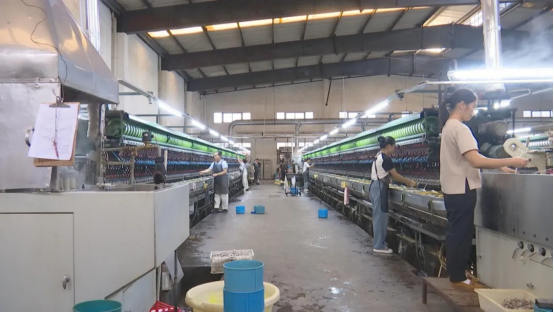 重慶市雙河絲綢有限公司董事長—陳松奎:我們廠目前已經(jīng)有12條繅絲生產(chǎn)線滿負(fù)荷生產(chǎn),每年可以生產(chǎn)白廠絲200噸左右。