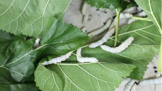 “養(yǎng)這個(gè)蠶還是需要一點(diǎn)技巧的?!焙喾窒淼溃骸氨热缯f(shuō)產(chǎn)房的消毒,還有桑葉的新鮮度要保證,每天早上喂蠶之前,首先要用石灰給蠶全部消毒,然后再撒桑葉。”