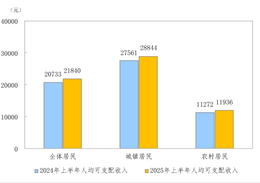 圖1 2025年上半年全國及分城鄉(xiāng)居民人均可支配收入