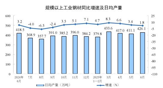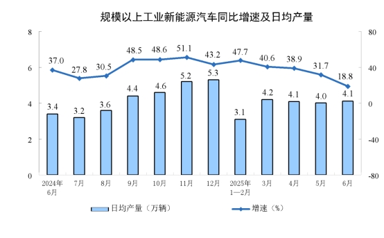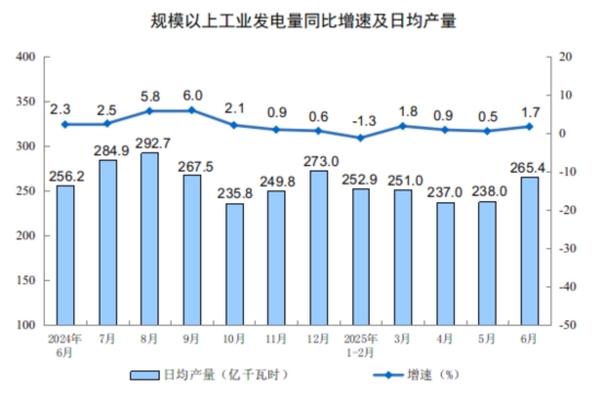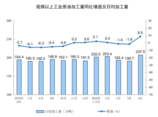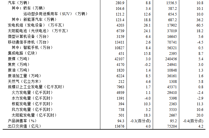 分產(chǎn)品看,6月份,規(guī)模以上工業(yè)623種產(chǎn)品中有379種產(chǎn)品產(chǎn)量同比增長。其中,鋼材12784萬噸,同比增長1.8%;水泥15547萬噸,下降5.3%;十種有色金屬695萬噸,增長4.4%;乙烯285萬噸,增長5.8%;汽車280.9萬輛,增長8.8%,其中新能源汽車123.4萬輛,增長18.8%;發(fā)電量7963億千瓦時(shí),增長1.7%;原油加工量6224萬噸,增長8.5%。
