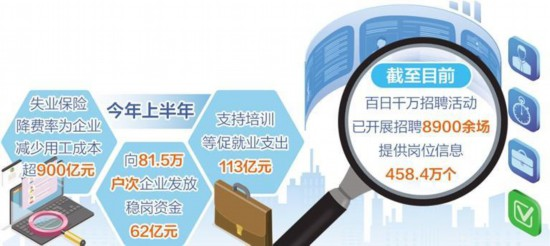 上半年,穩(wěn)就業(yè)政策支持力度進一步加大,確立了“支持企業(yè)穩(wěn)定一批、開發(fā)崗位承接一批、優(yōu)化服務(wù)轉(zhuǎn)移一批、加強培訓(xùn)儲備一批、強化保障兜底一批”的思路,著力穩(wěn)就業(yè)、穩(wěn)企業(yè)、穩(wěn)市場、穩(wěn)預(yù)期。
