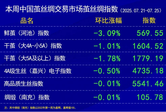 本周中國(guó)繭絲綢交易市場(chǎng)繭絲綢指數(shù)